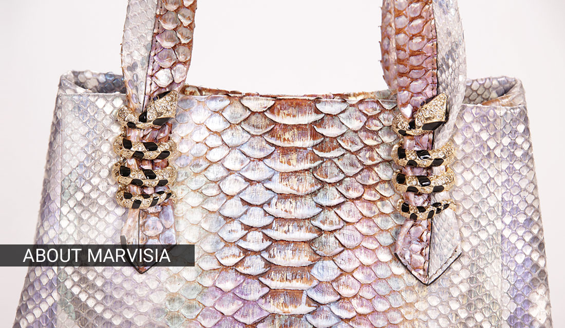 Marvisia is a refined luxury brand of the most sophisticated Italian fashion. Our accessories, 100% made in Italy, are inspired by the wonderful Italian landscape and the everlasting beauty of the Tuscan hills. The exclusive Marvisia bags are designed and handmade, like special works of art, in the heart of Italy, where Dante Alighieri, Leonardo Da Vinci and Michelangelo celebrated the wonder of creation.Aesthetic perfection, precious materials, craftsmanship tradition and the sense of style marry in a unique and unrepeatable alchemy to give life to refined luxury objects made of crocodile leather, python skin, and ostrich leather, and of special vegetable tanned leather.